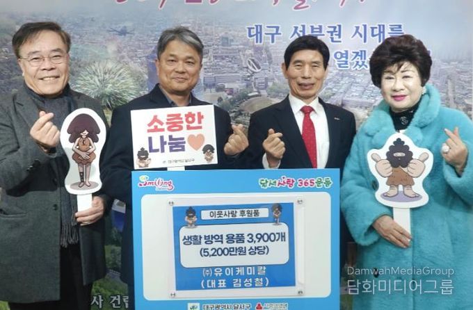 시민행정신문 강갑수 기자 | 대구 달서구는 ㈜유이케미칼로부터 관내 어려운 이웃들을 위해 건강·생활 방역용품 3종, 총 5천 2백만 원 상당의 후원품을 기탁받았다고 27일 밝혔다.