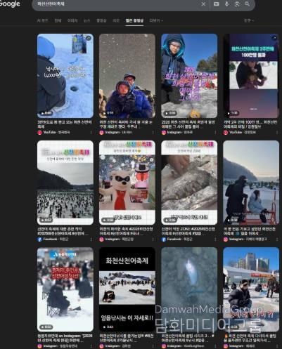 27일 인터넷 검색 사이트 구글에서 화천산천어축제를 키워드로 검색한 결과, 개막 후 18일 간 생성된 동영상만 6,000여건을 넘는 것으로 집계됐다.