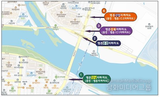 시민행정신문 강갑수 기자 | 울산시는 유사한 명칭을 사용해 위치 혼선 우려가 컸던 명촌교 일대 산업로, 강남·강북로에 위치한 4개 지하차도에 대해 명칭을 정비했다고 밝혔다.