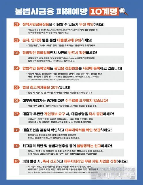 불법사금융 피해 예방·신고 안내문 2만 부를 제작·배부하고, 상인회와 협력해 하루 1~2회 ‘피해 예방 및 신고 안내 방송’을 실시하는 등 민생 현장에서 직접 홍보한다.