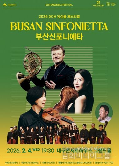 시민행정신문 강갑수 기자 | 대구콘서트하우스가 주최하는 2026 DCH 앙상블 페스티벌이 오는 2월 4일 저녁 7시 30분, 대구콘서트하우스 그랜드홀에서 부산신포니에타의 개막 공연과 함께 본격적인 막을 올린다.