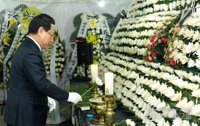 김영록 지사는 전남도 주요 관계자들과 함께 헌화·분향 후 묵념하며 고인의 넋을 기리고 영면을 기원했다.