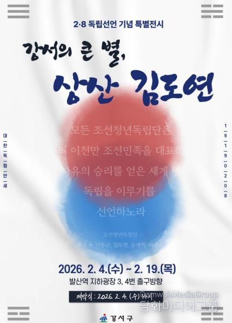 구 관계자는 “2·8 독립선언 기념일에 맞춰 상산 김도연 선생의 독립운동 업적을 되새기는 전시를 마련했다”며, “앞으로도 지역 역사 인물을 알리는 사업으로 구민 자부심을 높이는 역사문화도시 강서를 만들겠다”고 말했다.