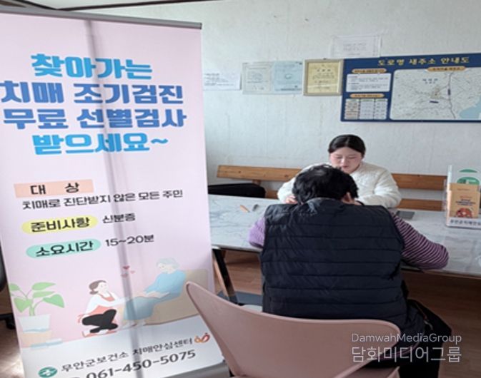 무안군치매안심센터에서는 치매 전문교육을 이수한 직원이 치매 선별검사를 실시하고 있으며, 검사 결과에 따라 진단·감별검사 연계, 전 군민 치매치료비 지원, 맞춤형 인지 강화 프로그램 참여 등 단계별 서비스를 제공하고 있다.