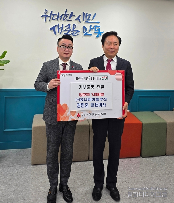 안동시는 지난 28일 시장실에서 ㈜유니웨이솔루션 권민준 대표이사가 참석한 가운데 2026년 여름철 현장 작업자들의 안전을 위한 방호복 7,000벌 기탁식을 가졌다고 밝혔다.