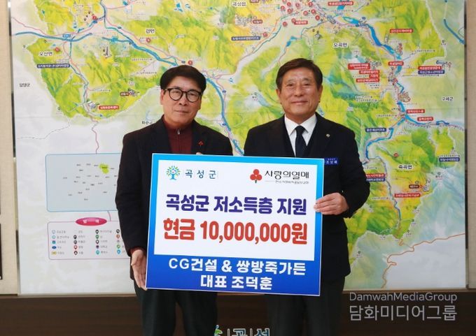 군 관계자는“꾸준히 나눔을 실천하고 계신 CG건설·쌍방죽가든 조덕훈 대표님께 깊이 감사드린다. 기탁하신 성금은 전남사회복지공동모금회를 통해 곡성군 저소득층 등 꼭 필요한 곳에 쓰일 수 있도록 하겠다.”라고 말했다.