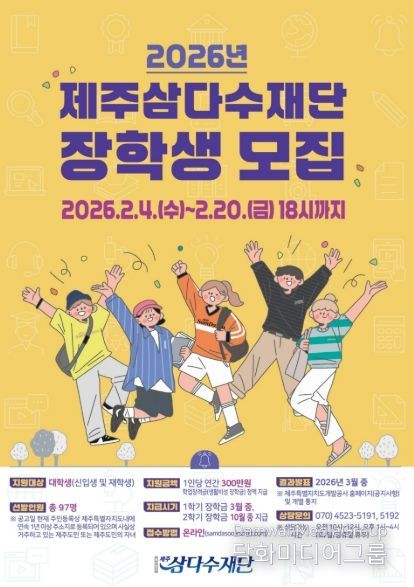 시민행정신문 이세훈 기자 | 재단법인 제주삼다수재단(이사장 백경훈)이 제주와 대한민국의 미래를 이끌어갈 우수 인재 양성을 위해 2026년도 제주삼다수 장학생을 모집한다.