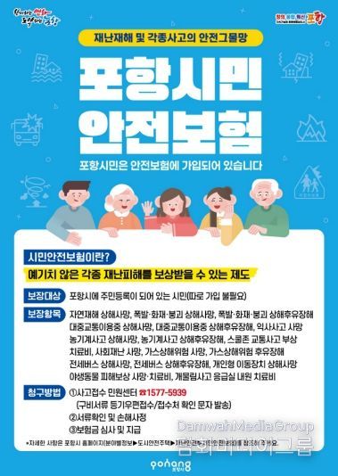 한편 포항시는 최근 3년간 시민안전보험을 통해 총 132건, 약 14억 원 규모의 보험금을 지급하며 재난과 사고로 피해를 입은 시민들의 생활 안정에 실질적인 도움을 제공해 왔다.