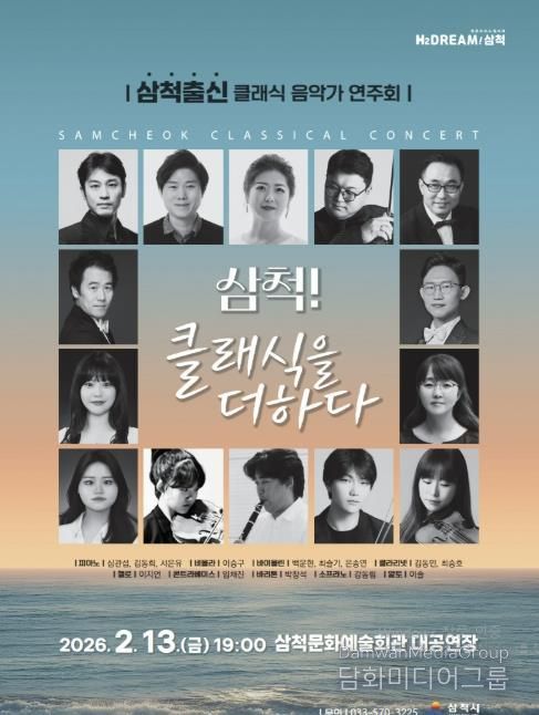 시 관계자는 “삼척 출신 음악가들의 뛰어난 연주를 통해 시민들이 문화적 자긍심을 느끼고, 지역 예술인들에게는 성취감을 안겨줄 수 있기를 기대한다”며 “앞으로도 시민들이 수준 높은 공연을 가까이에서 즐길 수 있도록 다양한 문화예술 프로그램을 마련하겠다”고 밝혔다.