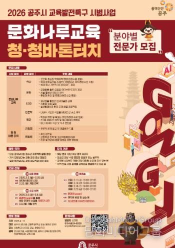 박찬옥 평생학습과장은 “이번 사업은 지역 기반 교육을 통해 공주시의 교육 브랜드를 강화하고, 지역 전문가 참여 확대를 통해 지속 가능한 교육 생태계를 구축할 수 있는 교육 모델”이라며 “청소년의 진로 탐색 역량과 자기설계 능력 향상에 함께할 많은 전문가들의 관심과 적극적인 참여를 기대한다”고 밝혔다.