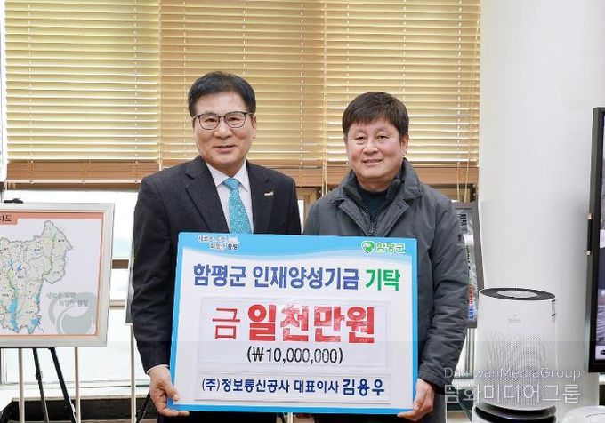함평군은 “지난 2일 ㈜정보통신공사가 1천만 원을, 한국희망교육개발원(대표 김경희)이 2백만 원을 군 인재양성기금에 기탁했다”고 3일 밝혔다.