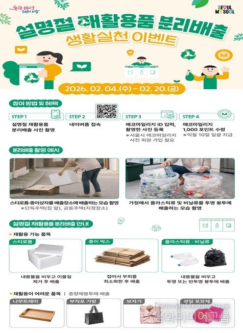 서울시는 이번 캠페인을 통해 시민들이 명절 이후 재활용품을 올바르게 배출하도록 유도하고, 재활용 효율 저하를 예방한다는 방침이다.