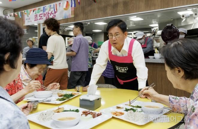 ‘주민참여 효도밥상’은 75세 이상 어르신을 대상으로 양질의 점심 식사는 물론 건강 관리, 법률·세무 상담까지 연계한 원스톱 어르신 복지 서비스로 새로운 돌봄 모델로 자리매김하고 있다.