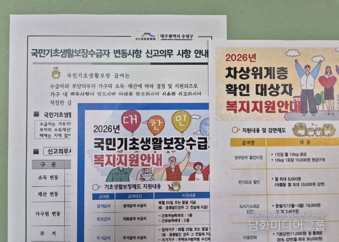 시민행정신문 기자 | 대구 수성구는 2026년 기초생활보장제도 개선 및 기준 완화에 발맞춰 복지사각지대를 해소하고 주민 체감도를 높이기 위한 맞춤형 복지사업을 본격 추진한다고 밝혔다.