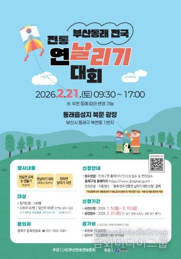동래구 관계자는“연날리기는 단순한 전통 놀이를 넘어 나쁜 기운을 날려 보내고 소망과 공동체 정신을 담은 전통문화이다”라며 “많은 분이 참여해 전통의 멋과 즐거움을 함께 나누길 바란다”라고 말했다.