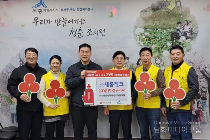 유진근 ㈜새롬테크 대표는 “회사가 전의면에 위치했지만 북부 생활권과 공동체로 이어진 조치원읍 이웃을 위해 기부를 결심했다”며 “지역 간 경계를 넘어 서로 돕는 따뜻한 나눔 문화가 확산하길 바라고, 기업 차원의 사회공헌 활동을 지속적으로 이어가겠다”고 말했다.