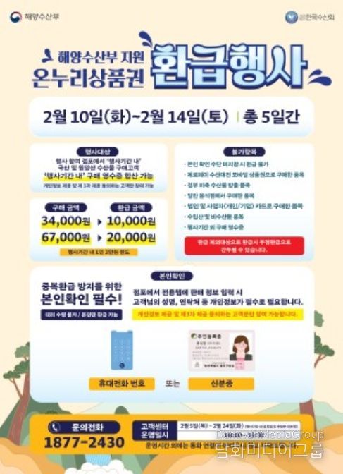 송상욱 경남도 수산정책과장은 “설 명절을 앞두고 도민들이 전통시장에서 국내산 수산물을 합리적인 가격으로 구매할 수 있도록 이번 환급행사를 마련했다”라며, “올해는 전년보다 참여 시장을 확대해 더 많은 도민이 혜택을 누릴 수 있을 것으로 기대한다”라고 말했다.