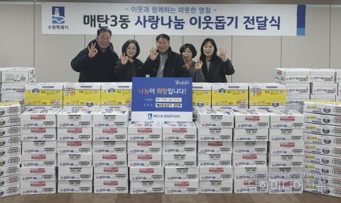 정희경 매탄중심상가상인회장은 “설 명절만큼은 우리 주변의 어려운 이웃들이 소외되지 않고 따뜻한 정을 느끼며 든든하게 보내시길 바라는 마음으로 회원들과 정성을 모았다”며, “앞으로도 지역 상인들이 힘을 합쳐 주변을 살피고 나눔을 실천하는 활동에 적극 앞장서겠다”고 전했다.