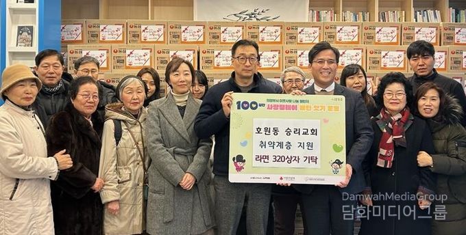 정화자 동장은 “매년 나눔을 실천해 주시는 승리교회에 깊은 감사를 드린다”며 “기탁해 주신 라면은 도움이 필요한 이웃들에게 정성껏 전달해 따뜻한 설 명절을 보낼 수 있도록 하겠다”고 말했다.