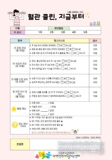 프로그램 참가자들은 매주 1회 제공하는 건강관리 체크리스트를 통해 자신의 건강 상태를 정밀하게 살핀다.