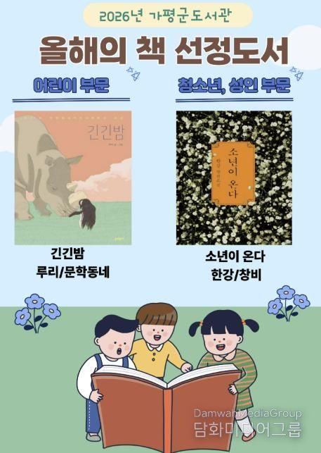 시민행정신문 강갑수 기자 | 가평군도서관이 군민의 독서 문화 확산을 위해 ‘2026년 올해의 책’으로 루리 작가의 『긴긴밤』과 한강 작가의 『소년이 온다』를 선정했다.