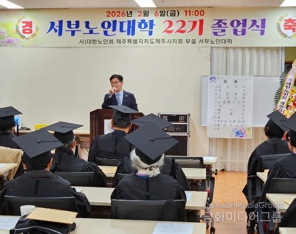 시민행정신문 강갑수 기자 | 현원돈 제주시 부시장은 2월 6일 제주시 서부노인복지회관에서 열린 제22기 서부노인대학 졸업식에 참석해 어르신들께 존경의 마음을 전했다.