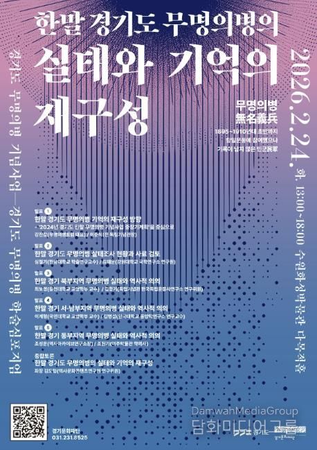시민행정신문 기자 | 경기문화재단은 경기도 무명의병 기념사업의 일환으로 제2회 학술심포지엄을 개최한다. '한말 경기도 무명의병의 실태와 기억의 재구성'이라는 주제로 2024년부터 이어온 경기도 31개 시군 무명의병 실태조사 성과를 학술적으로 공론하기 위해 마련됐다.