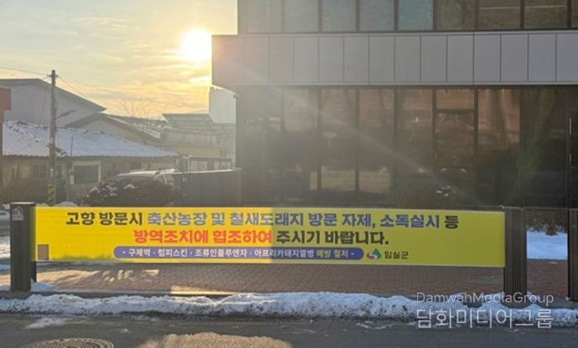 시민행정신문 김학영 기자 | 임실군은 설 명절을 앞두고 조류인플루엔자(AI), 아프리카돼지열병(ASF) 등 가축질병의 확산을 예방하기 위해 고향 방문시 축산농장 및 철새도래지 방문 자제 협조를 당부하는 홍보 현수막을 12개 읍·면 및 주요 도로변 게시판 20개소에 설치했다.