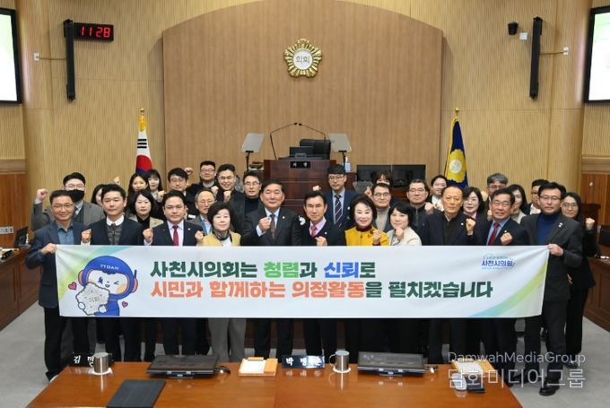 이날 사천시의회 의원들과 직원들은 “사천시의회는 청렴과 신뢰로 시민과 함께하는 의정활동을 펼치겠습니다.”라는 문구가 담긴 청렴 현수막을 들고 청렴 실천 의지를 적극적으로 알렸다.