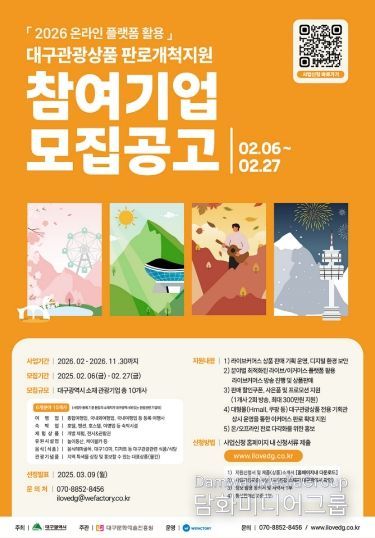 시민행정신문 강갑수 기자 | 대구광역시와 대구문화예술진흥원 관광본부는 지역 관광사업체의 경쟁력 강화를 위해 ‘2026년 온라인 플랫폼 활용 대구 관광상품 판로개척 지원사업’을 추진한다.