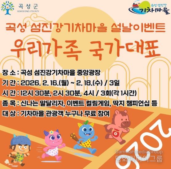 시민행정신문 강갑수 기자 | 곡성군은 설명절 연휴 기간 중 2월 16일부터 18일까지 3일간 섬진강기차마을 중앙광장에서 방문객들을 위한 특별 이벤트를 운영한다고 6일 밝혔다.