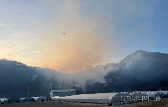 17시 현재 진화율은 60%다. 도는 공중과 지상의 진화 역량을 총동원해 인명과 재산 피해 없이 산불을 조기에 진화하는 데 최선을 다할 방침이다.
