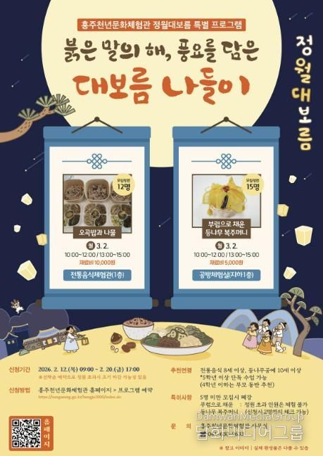 시민행정신문 강갑수 기자 | 홍성군 홍주천년문화체험관은 정월대보름을 맞이하여 내달 2일에 특별 프로그램 ‘붉은 말의 해, 풍요를 담은 대보름 나들이’를 운영한다.