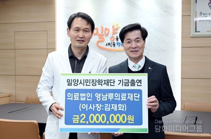 의료법인 영남루의료재단은 밀양에서 ‘갤러리의 아침 요양병원’을 운영하며 지역 어르신 돌봄에 앞장서고 있으며, 이번에 처음으로 장학기금 기탁에 참여하며 지역 사회 공헌 활동의 폭을 넓혔다. 김재화 이사장은 “지역의 미래를 이끌 인재들이 경제적 어려움 없이 학업에 전념할 수 있는 환경을 만드는 데 보탬이 되길 바란다”고 전했다.