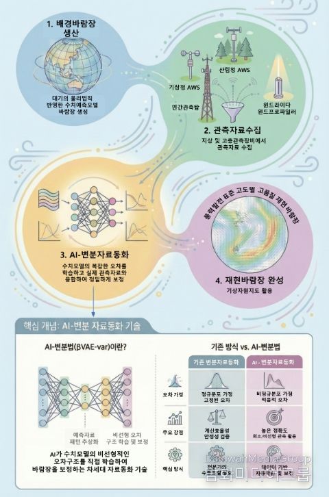바람 분석정보는 기상청이 보유한 지상기상관측자료, 윈드라이다, 연직바람관측장비 등에서 수집한 자료뿐만 아니라 풍력발전 관측탑에서 측정한 자료를 추가로 이용하여 바람 재현 성능이 향상됐다. 이 과정에서 관측자료와 수치예보모델의 결과를 유기적으로 활용하는 인공지능(AI)-변분자료동화를 결합한 수치예보기술을 자체 개발했다.