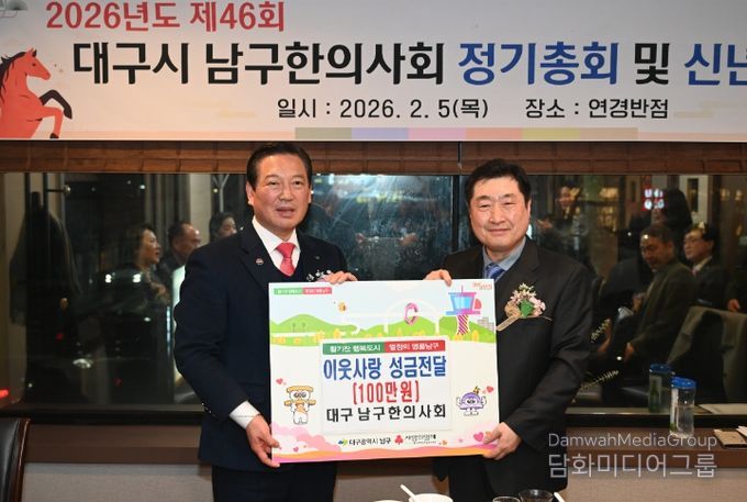 대구광역시 남구 한의사회는 지난 5일 개최된 제46회 남구한의사회 정기총회 및 신년교례회에서 새해를 맞아 지역사회 내 어려운 이웃을 돕기 위해 성금 100만 원을 대구 남구청에 전달했다.