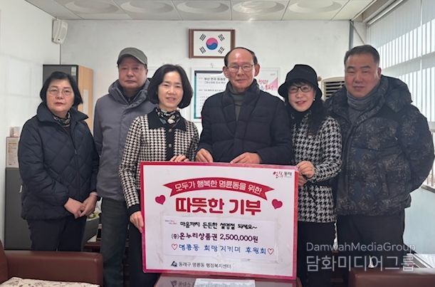 시민행정신문 강갑수 기자 | 부산 동래구 명륜동 행정복지센터는 지난 9일 희망지키미 후원회(회장 조치선)로부터 설 명절을 맞아 250만 원 상당의 온누리상품권을 전달받았다고 밝혔다.