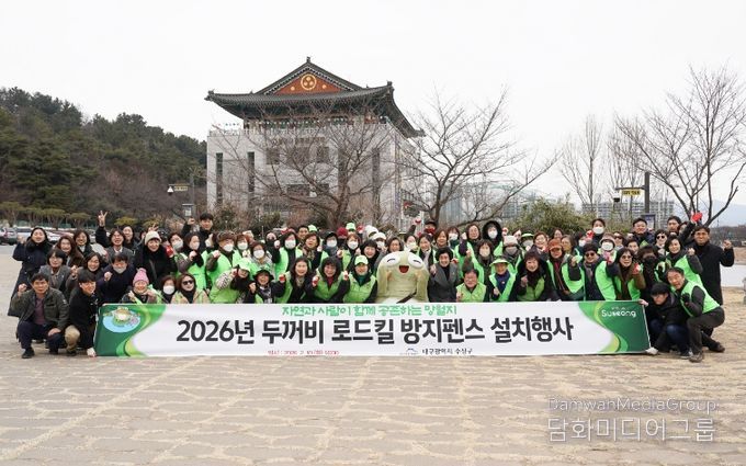 시민행정신문 강갑수 기자 | 대구 수성구는 지난 10일 전국 최대 두꺼비 집단 산란지인 욱수동 망월지 일대에서 ‘두꺼비 로드킬 방지 펜스 설치’ 행사를 실시했다.