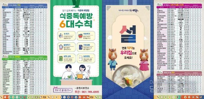 시 관계자는 “안내된 업소라도 사정에 따라 영업일정이 변경될 수 있으니 사전 확인 후 방문을 권장한다”며, “철저한 식중독 예방과 친절한 서비스로 순천을 찾는 분들에게 최상의 외식 환경을 제공하겠다”고 말했다.