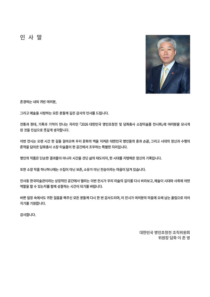 시민행정신문 김학영 기자 | 재단법인 대한민국 명인연합회가 주최하는 이 행사는 한국 전통문화와 예술의 보존·계승·발전을 목적으로 하는 의미 있는 전시입니다.