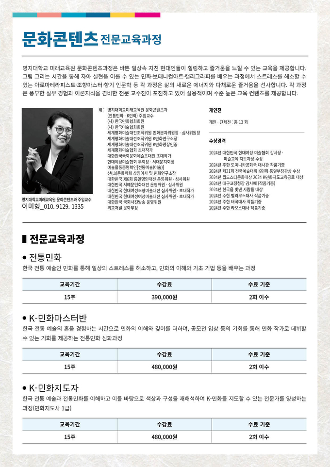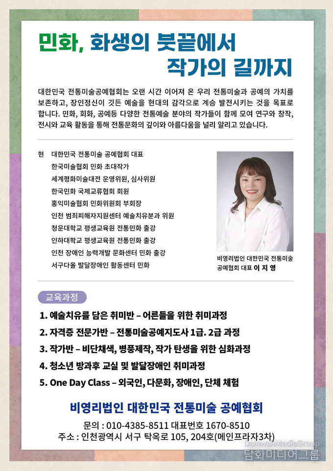 목 적 : 전통문화 계승의 선두주자 / 한국 전통문화와 예술의 가치를 오늘에 잇고, 내일로 전하다.