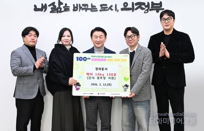 시민행정신문 강갑수 기자 | 의정부시는 2월 12일 지역 봉사와 나눔을 목적으로 결성된 민간 봉사단체 경의동사가 관내 경로당에 백미(10kg 단위) 156포(500만 원 상당)를 기탁하며 ‘100일간 사랑릴레이 배턴 잇기’에 동참했다고 밝혔다.