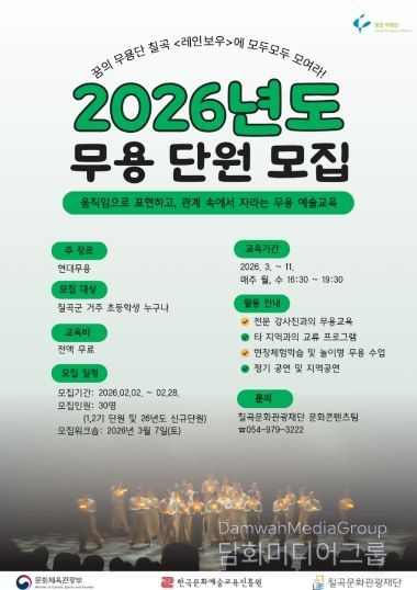 시민행정신문 기자 | (재)칠곡문화관광재단(이사장 김재욱)은 2025 꿈의 무용단, ‘칠곡’ '레인보우' 단원을 모집한다.