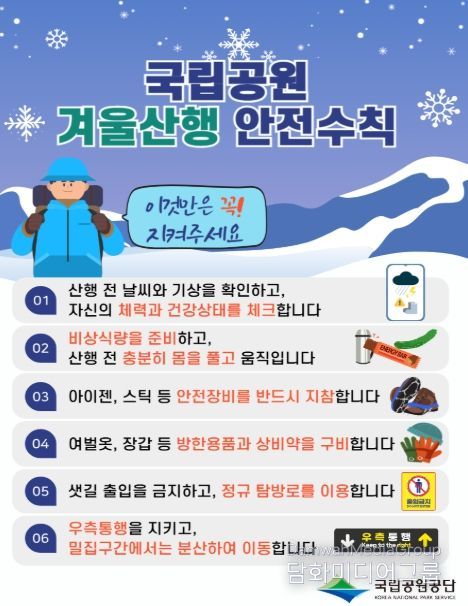 시민행정신문 강갑수 기자 | 기후에너지환경부 산하 국립공원공단(이사장 주대영)은 2월 14일부터 18일까지 설 연휴 탐방객 안전관리 대책 기간으로 지정하고, 국립공원 주요 지역 1,544곳에 인력 4,833명을 집중 배치해 탐방객의 생명과 안전을 지키기 위한 현장 대응을 대폭 강화한다고 밝혔다.