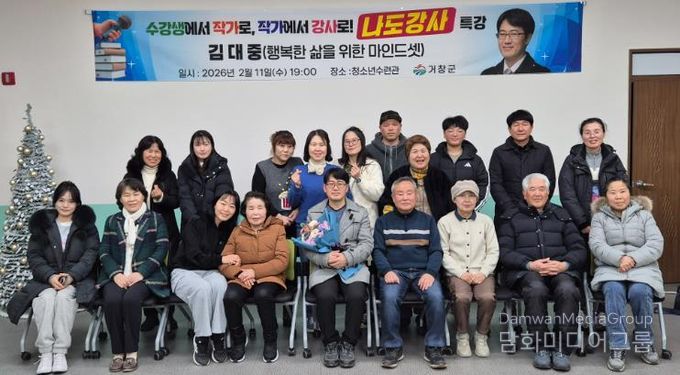 이날 강연은 『삶 어게인』의 저자인 아림초등학교 김대중 교사가 ‘행복한 삶을 위한 마인드셋’을 주제로 진행했으며, 20여 명의 군민이 참석한 가운데 성공적으로 마무리됐다.