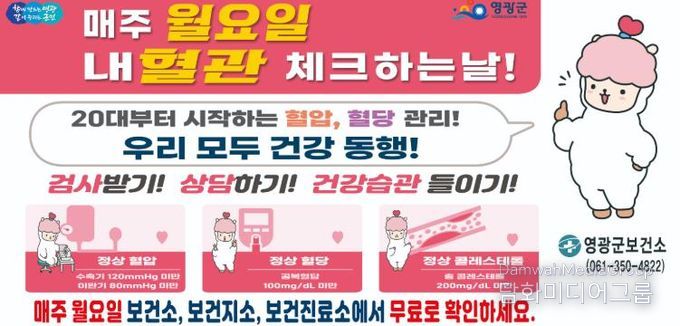 시민행정신문 강갑수 기자 | 영광군은 심뇌혈관질환 예방을 위해 매주 월요일을‘혈관 건강 체크하는 날’로 지정해 오는 2월 23일부터 본격 추진한다고 밝혔다.