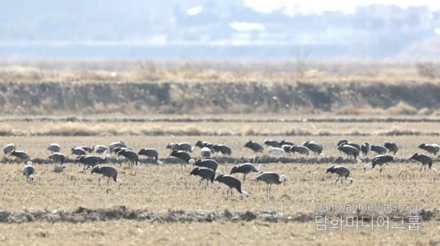 시는 지난 12일 국제적 보호종인 흑두루미의 안정적인 서식 환경 조성을 위해 먹이 8톤을 제공했다.