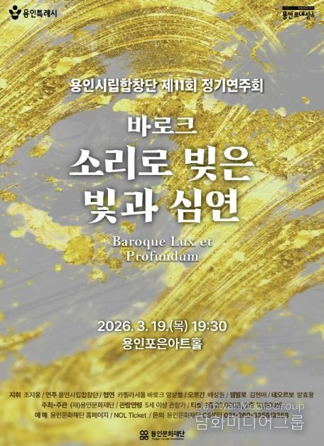 시민행정신문 기자 | 용인문화재단은 오는 3월 19일 오후 7시 30분, 포은아트홀에서 용인시립합창단 제11회 정기연주회 '바로크 – 소리로 빚은 빛과 심연'을 개최한다.