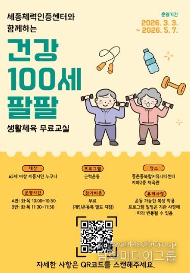 오영철 세종특별자치시체육회장은 “어르신들이 안전하게 운동을 시작하고 꾸준히 실천할 수 있도록 운동 프로그램을 구성했다”며 “건강한 100세 시대를 준비하는 계기가 되길 바란다”고 말했다.