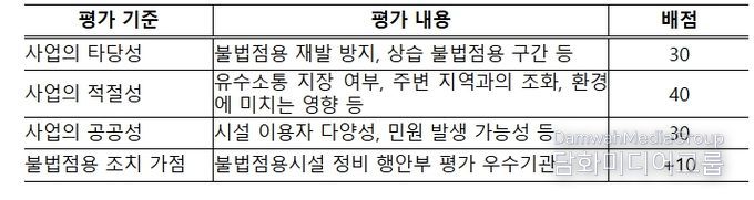 공모 및 사업 선정은 3월 말에 완료되며, 4월부터 공모사업이 여름 휴가철 이전까지 신속하게 추진된다. 이를 통해 불법점용이 빈번하게 발생하는 여름철 이전에 불법행위가 차단될 수 있을 것으로 보인다.